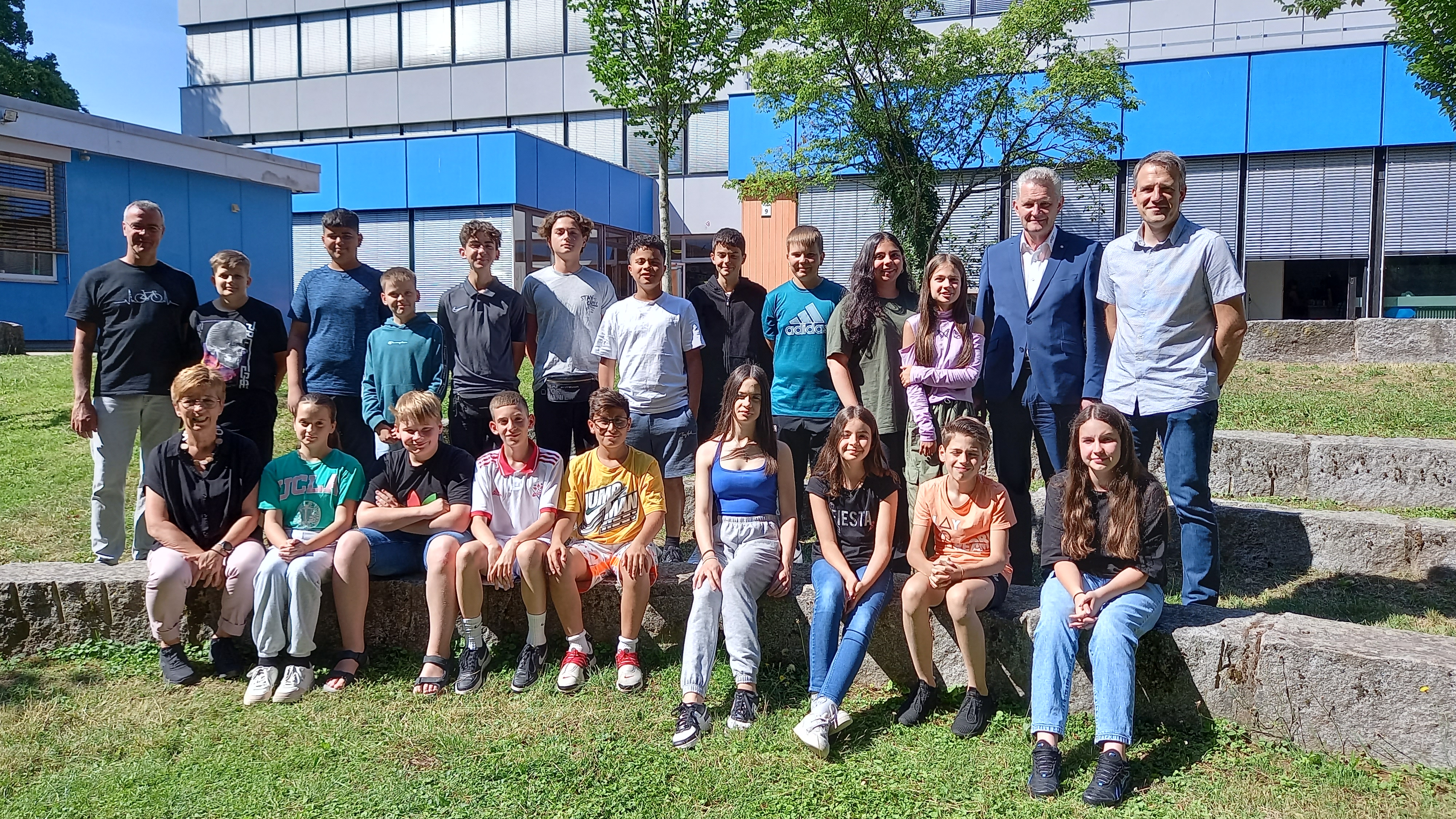 Bild v.l.n.r.: Axel Oßwald, Sabine Baumann, Klassensprecher der Klassen 5-7,