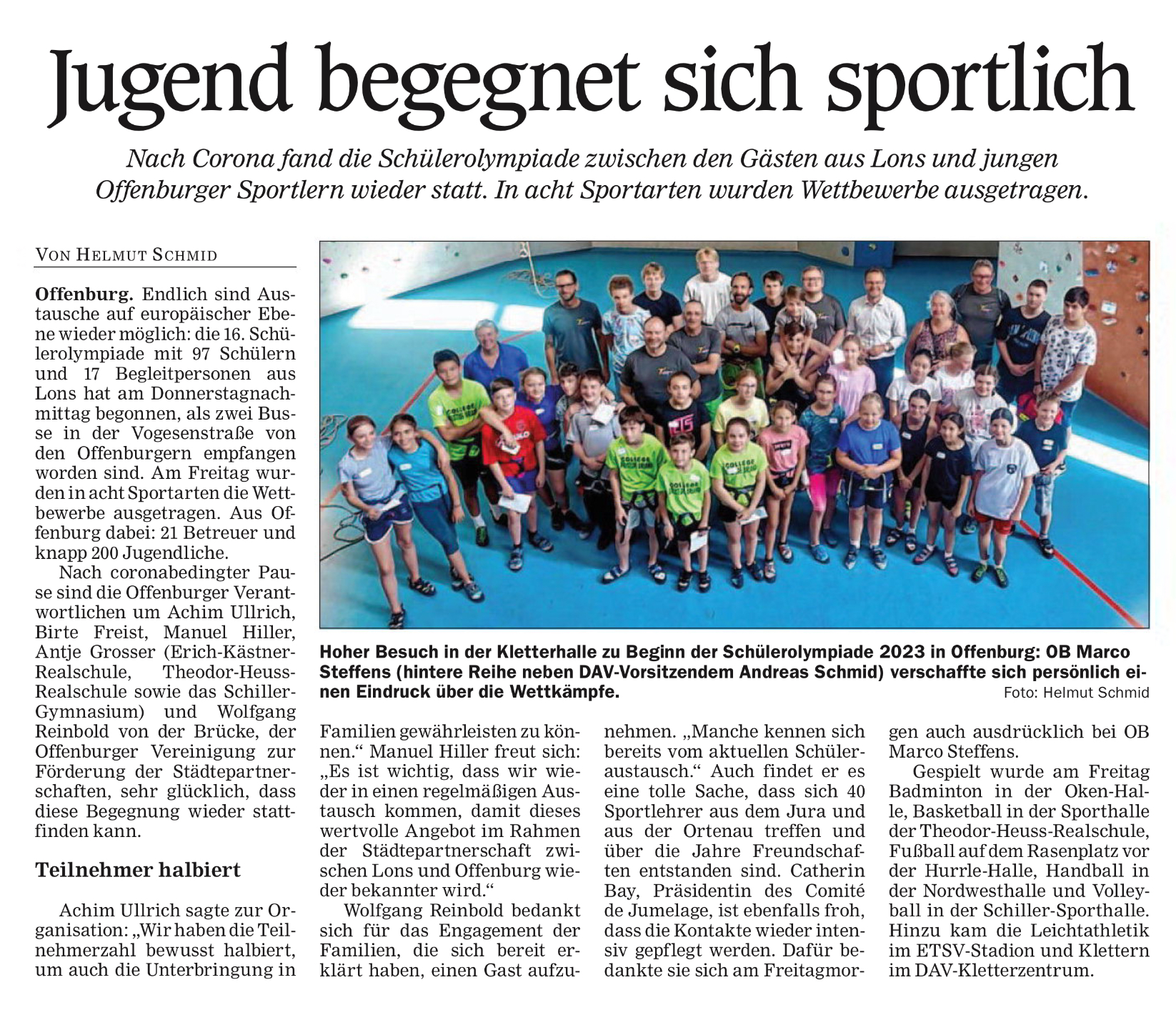 Jugend begegnet sich sportlich 16.06.2023 Lesen Sie hier den Artikel aus dem Offenburger Tagblatt vom 19. Juni 2023 « zurück zur Übersicht