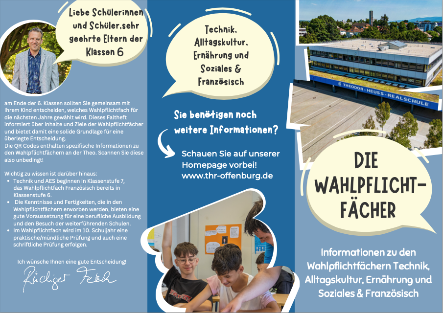 An der Theodor-Heuss-Realschule werden drei Wahlpflichtfächer angeboten. Sie sind Bestandteil der Abschlussprüfung in Klasse 10.